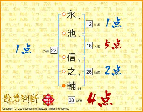 永池信之輔さんの総運は38画の4点!