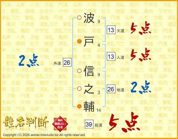 波(9画)戸(4画) 信(9画)之(3画)輔(14画)