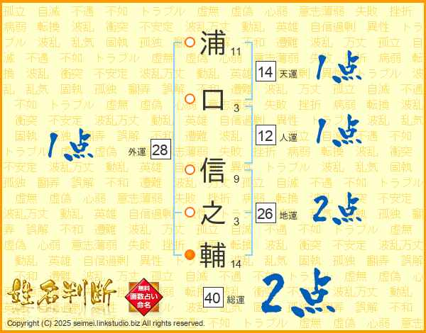 浦(11画)口(3画) 信(9画)之(3画)輔(14画)