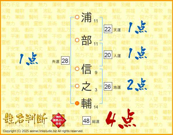浦(11画)部(11画) 信(9画)之(3画)輔(14画)