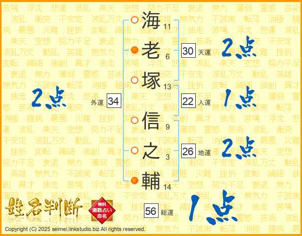 海(11画)老(6画)塚(13画) 信(9画)之(3画)輔(14画)