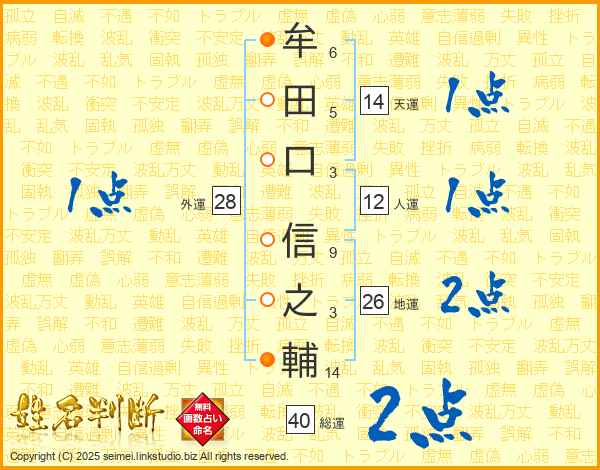 牟田口信之輔さんの天運は14画の1点!