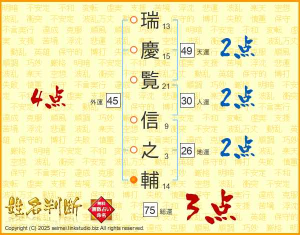 瑞(13画)慶(15画)覧(21画) 信(9画)之(3画)輔(14画)