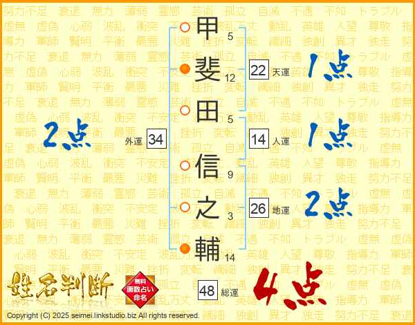 甲斐田信之輔さんの総運は48画の4点!