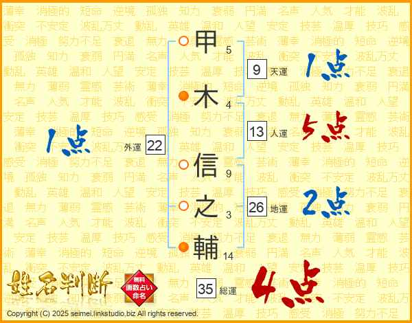 甲(5画)木(4画) 信(9画)之(3画)輔(14画)