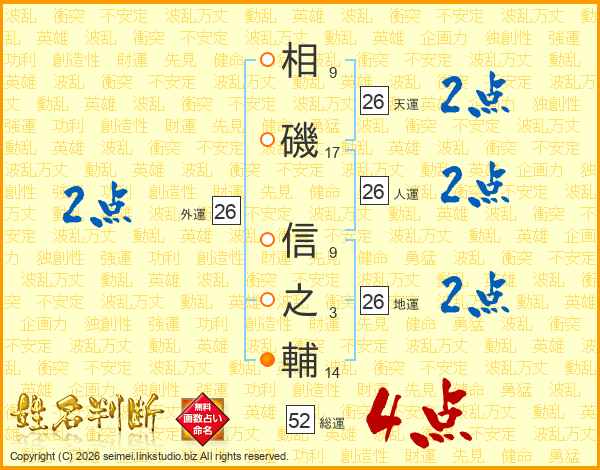 相磯信之輔さんの天運は26画の2点!