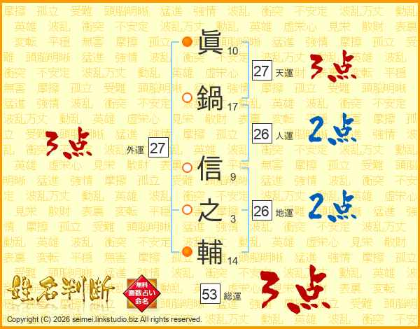 眞鍋信之輔さんの総運は53画の3点!