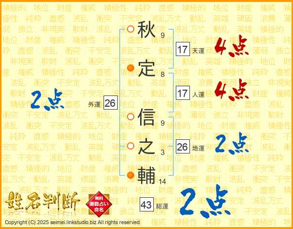 秋(9画)定(8画) 信(9画)之(3画)輔(14画)