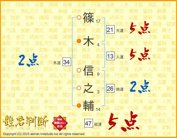篠木信之輔さんの総運は47画の5点!