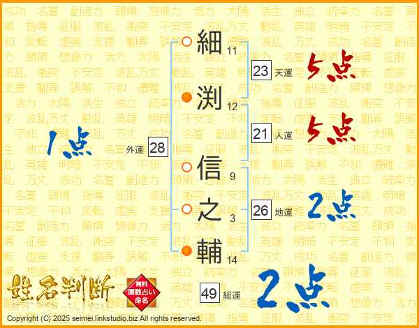 細(11画)渕(12画) 信(9画)之(3画)輔(14画)