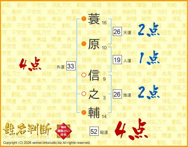 蓑(16画)原(10画) 信(9画)之(3画)輔(14画)