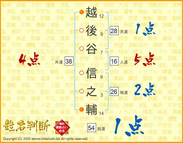 越(12画)後(9画)谷(7画) 信(9画)之(3画)輔(14画)