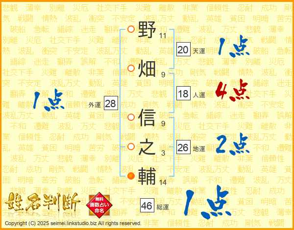 野畑信之輔さんの総運は46画の1点!