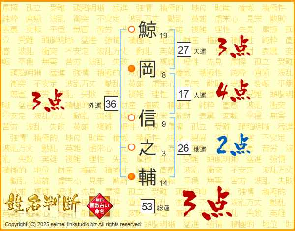 鯨(19画)岡(8画) 信(9画)之(3画)輔(14画)