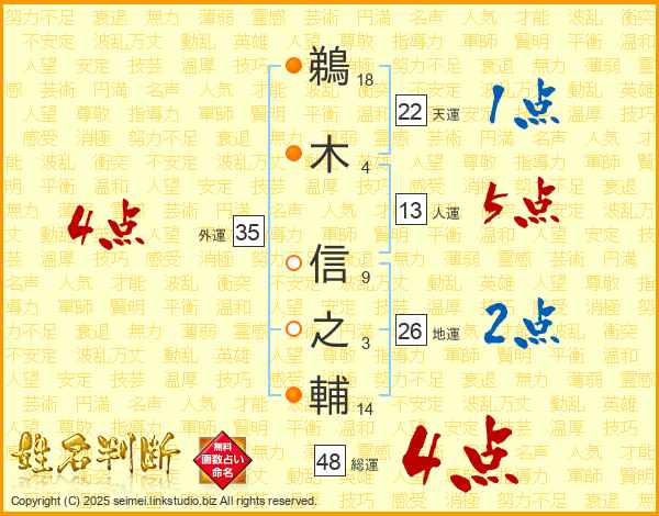 鵜木信之輔さんの人運は13画の5点!