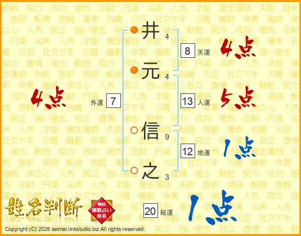 井(4画)元(4画) 信(9画)之(3画)