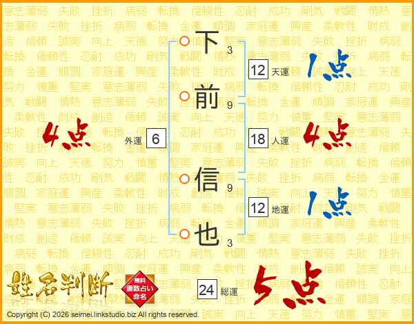 下前信也さんの総運は24画の5点!