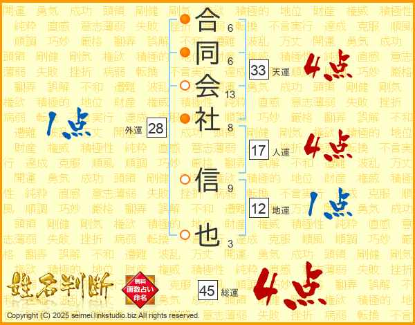 合(6画)同(6画)会(13画)社(8画) 信(9画)也(3画)
