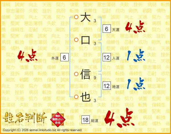 大口信也さんの総運は18画の4点!