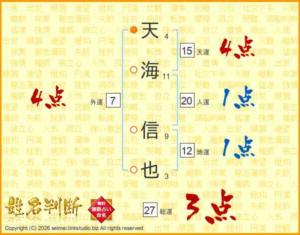 天海信也さんの総運は27画の3点!