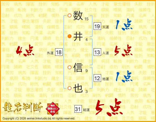 数井信也さんの総運は31画の5点!
