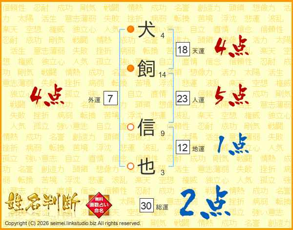 犬飼信也さんの天運は18画の4点!