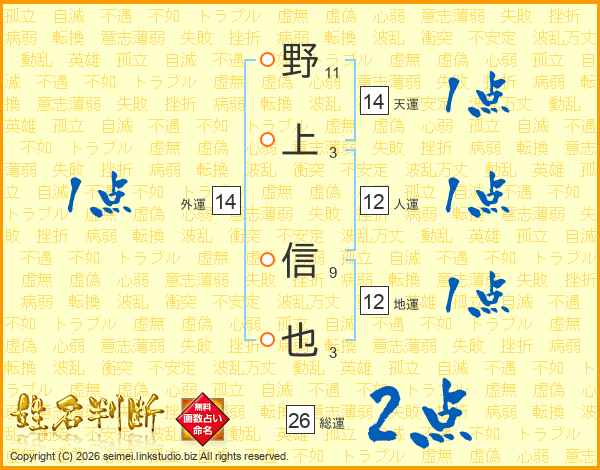 野上信也さんの総運は26画の2点!