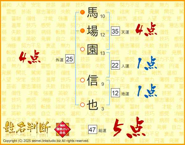 馬場園信也さんの総運は47画の5点!