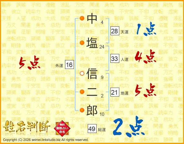 中塩信二郎さんの総運は49画の2点!
