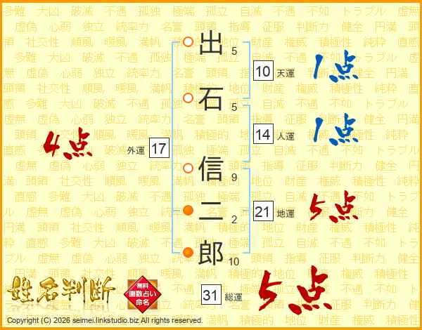 出石信二郎さんの総運は31画の5点!