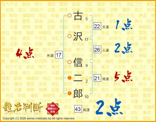 古沢信二郎さんの人運は26画の2点!