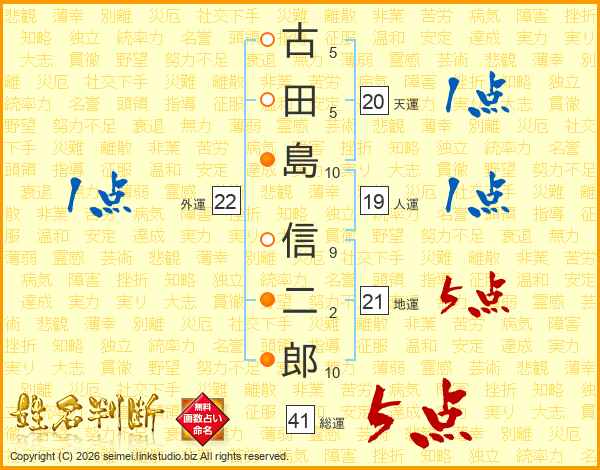 古田島信二郎さんの地運は21画の5点!