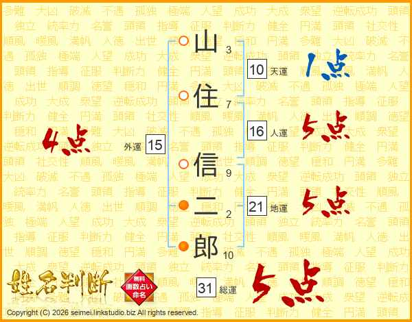 山住信二郎さんの総運は31画の5点!