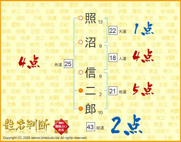 照沼信二郎さんの天運は22画の1点!