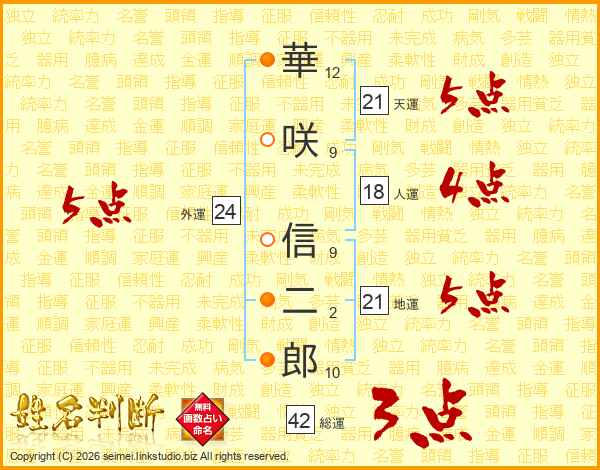 華咲信二郎さんの天運は21画の5点!