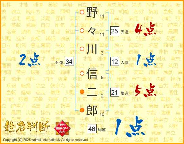 野々川信二郎さんの天運は25画の4点!
