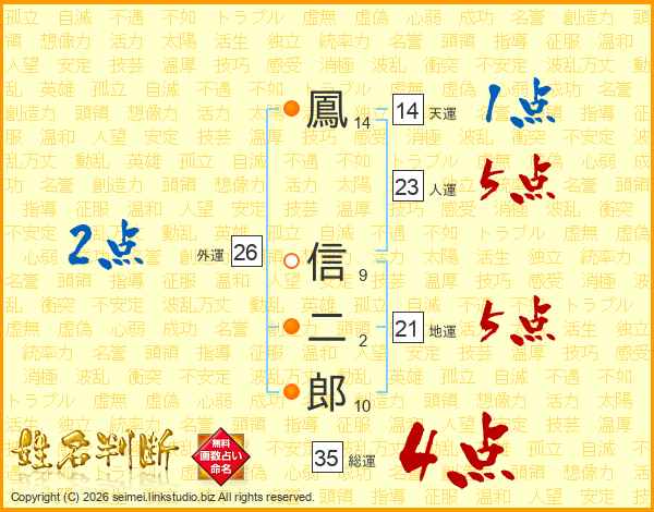 鳳信二郎さんの総運は35画の4点!