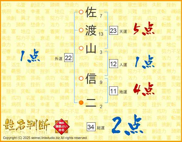 佐渡山信二さんの地運は11画の4点!