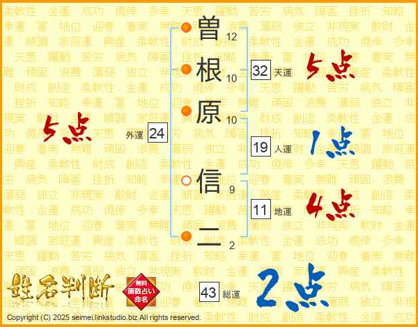 曽根原信二さんの天運は32画の5点!