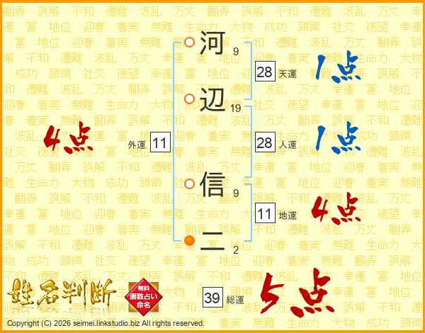 河辺信二さんの総運は39画の5点!