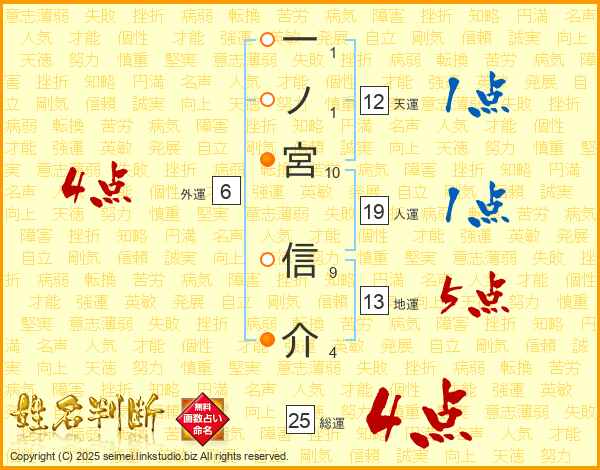 一ノ宮信介さんの総運は25画の4点!