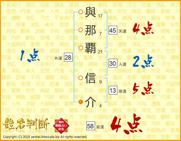 與那覇信介さんの総運は58画の4点!
