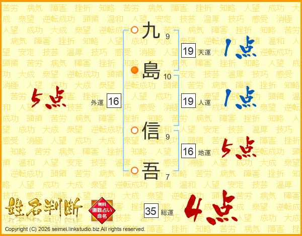 九島信吾さんの総運は35画の4点!