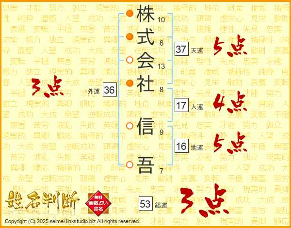 株式会社信吾さんの総運は53画の3点!