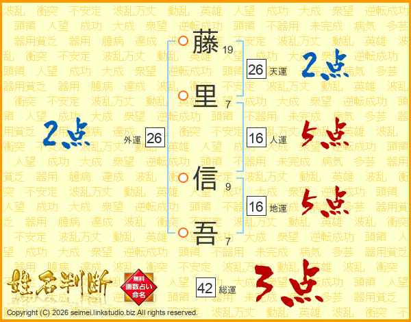 藤里信吾さんの天運は26画の2点!