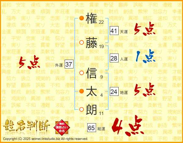 権藤信太朗さんの天運は41画の5点!