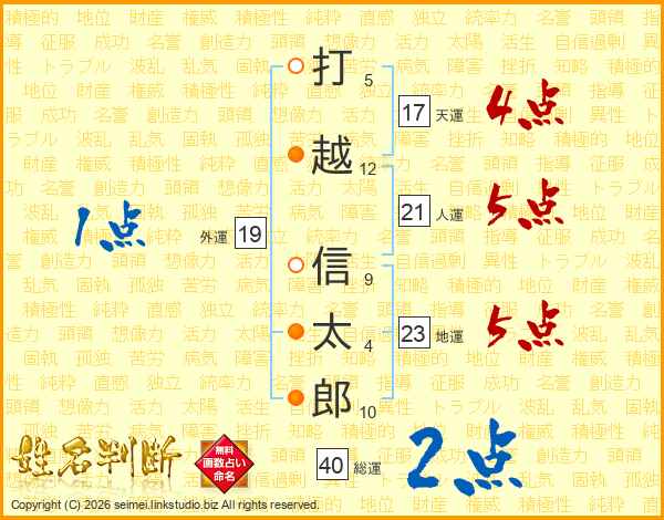 打越信太郎さんの地運は23画の5点!