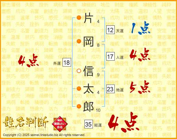 片岡信太郎さんの総運は35画の4点!