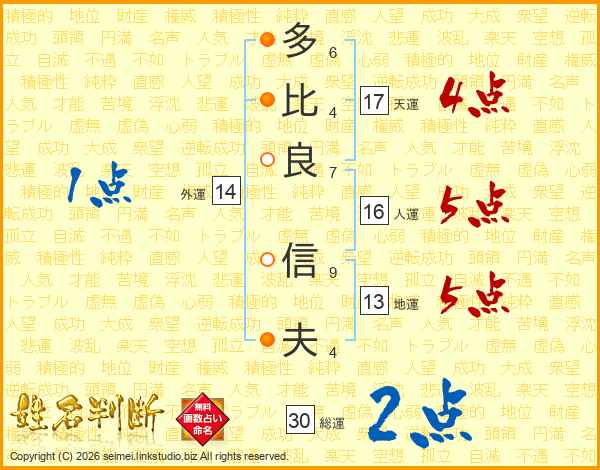 多比良信夫さんの天運は17画の4点!