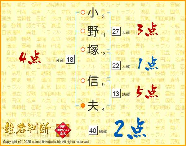 小野塚信夫さんの天運は27画の3点!